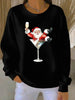 Women's Santa Claus and red wine glass print Ribbed Round-Neck Sweatshirt