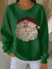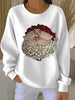 Women's Santa Claus Printed Ribbed Round-Neck Sweatshirt