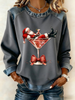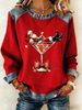 Women's Santa Claus sits on a wine glass Denim Patchwork Top