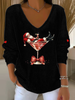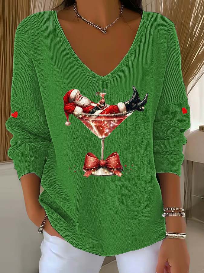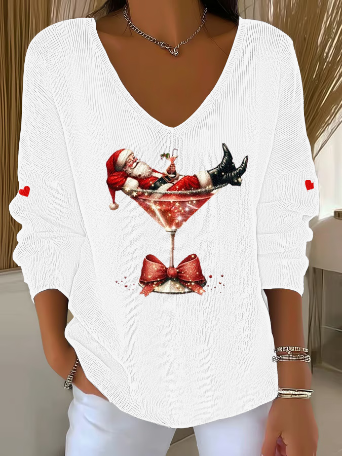 Women's  Santa Claus sitting on a wine glass V-Neck Ribbed Top