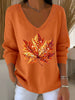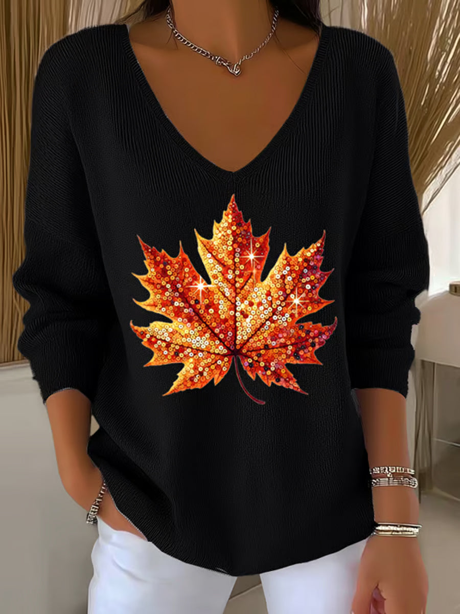 Women's Sequined Maple Leaf Printed Casual Long Sleeve Top