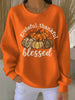 Women's  Thankful Grateful & Blessed Thanksgiving Ribbed Round-Neck Sweatshirt