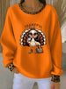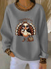 Women's Thanksgiving Print Ribbed Round-Neck Sweatshirt