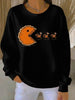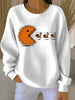 Women's Thanksgiving turkey Printed Ribbed Round-Neck Sweatshirt