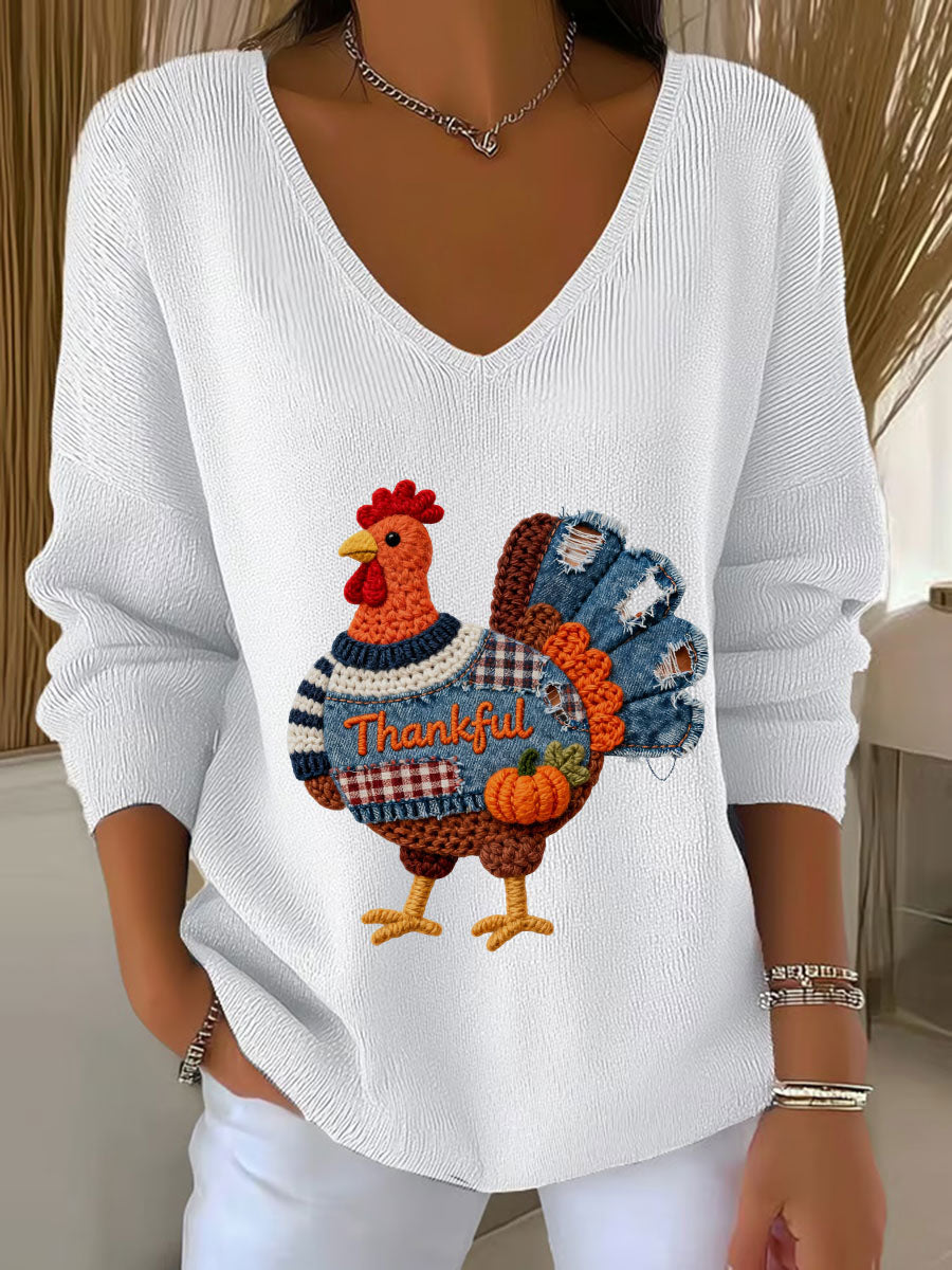 Women's Thanksgiving Turkey V-neck Long Sleeve T-shirt