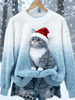 Women's Vintage Christmas Cat Printed Flannel Sweatshirt
