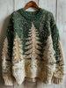 Women's Vintage Christmas Tree Art Print Casual Sweatshirt