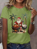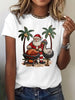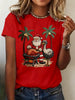 Women's Vintage Tropical Santa Claus Print Tee