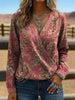 Women's Vintage Western Style V-Neck Long Sleeve Top