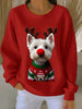Women's  West Highland White Terrier Westie Christmas Ribbed Round-Neck Sweatshirt