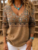 Women's Western Retro Pattern Print  V-Neck Ribbed Top