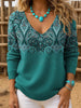 Women's Western Retro Pattern Print V-Neck Ribbed Top