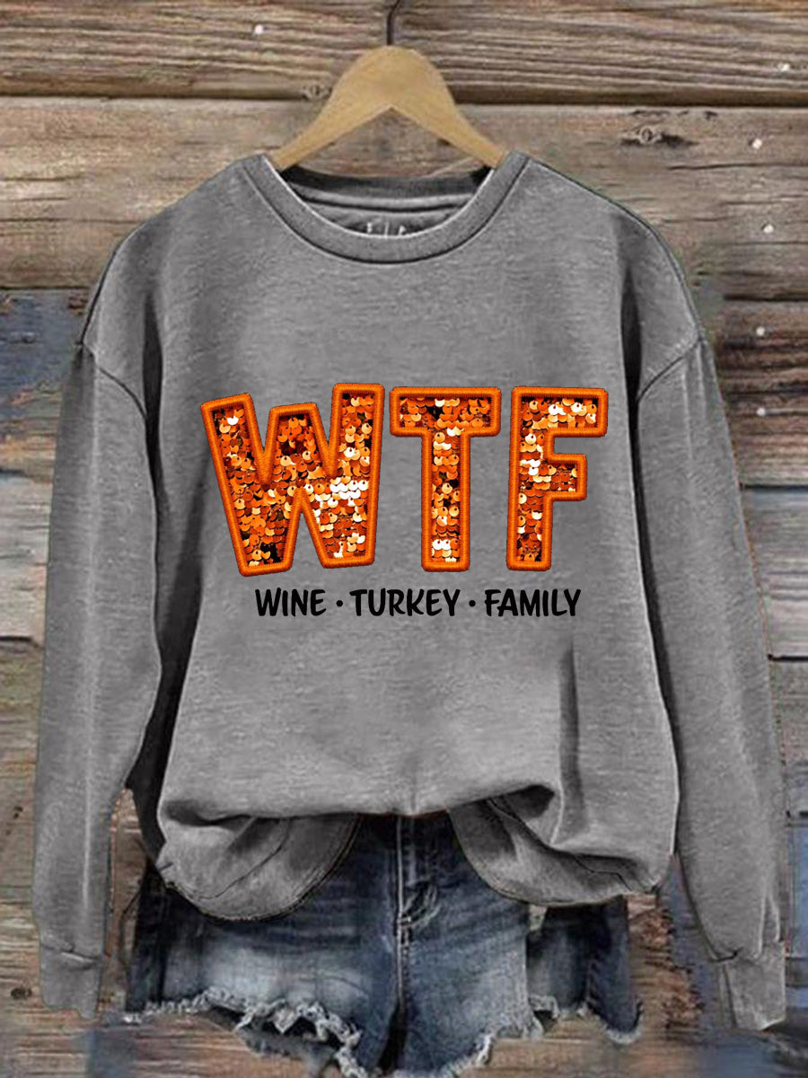 Women's WTF Wine Turkey Family Funny Thanksgiving Sweatshirt